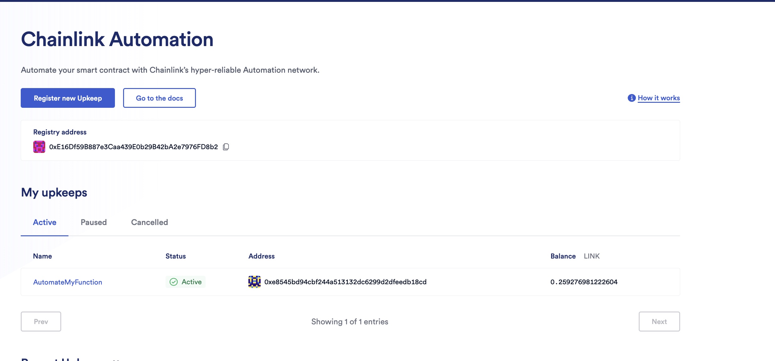 Go to the Chainlink Automation App and connect to the Sepolia testnet. Your upkeep will be listed under My upkeeps:
